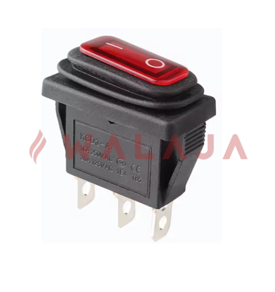 The red rocker button provides clear visual indication for STOP, OFF, or alert states, helping operators quickly identify switch status and improving safety.