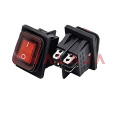 The red rocker button and status indicator clearly signal OFF / STOP / ALERT conditions, helping operators quickly identify switch state and improving safety.