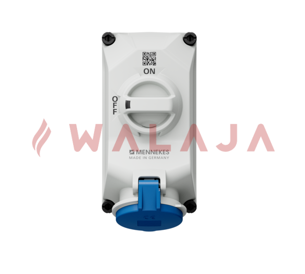 The X-CONTACT CEE wall-mounted receptacle is a robust and reliable solution for industrial and commercial power distribution. Rated at 32 A with IP44 protection, it is protected against solid objects larger than 1 mm and water splashes from any direction. This version is switched and features a mechanical DUO-interlock for enhanced operational safety, along with a 3-pole switch for secure power control. Suitable for 230 V, 50/60 Hz applications, it is ideal for workshops, production facilities, and temporary power installations.