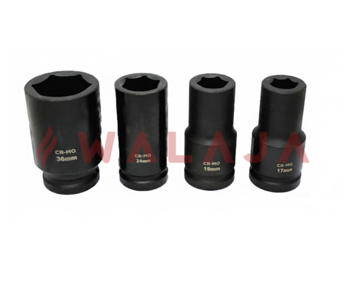 The 3/4″ Drive Deep Impact Socket (24 mm, 6-Point) is engineered for heavy-duty, high-torque applications where strength and extended reach are essential. Its deep profile allows access to recessed fasteners and long studs, while the 6-point design ensures secure engagement and reduced risk of fastener rounding under impact loads.