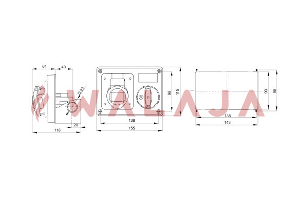 Rated at 32A, 415V, this device ensures reliable power for industrial equipment, motors, and machinery.
