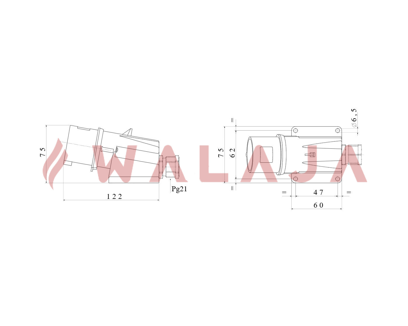 The GEWISS GW60401 is a durable wall mounted industrial plug, designed with a 90-degree angled entry for convenient cable routing and secure installation. Ideal for 16A, 3-pin, 110V power applications, this plug ensures safe and efficient electrical connections in industrial and commercial environments. With IP44 protection, it provides resistance against splashes, dust and mechanical impact.