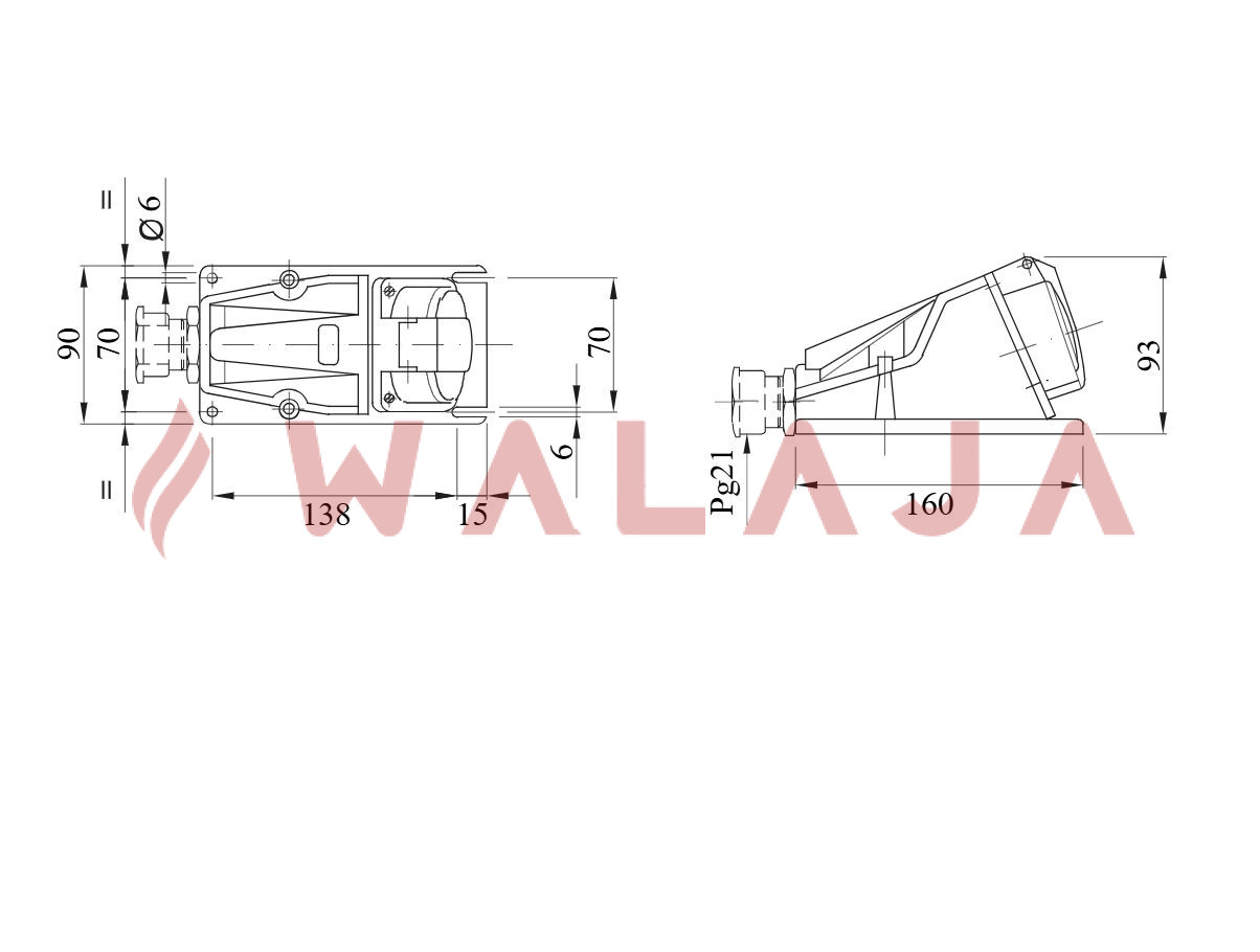 Type: Wall Mounted Socket – 90° Angle
