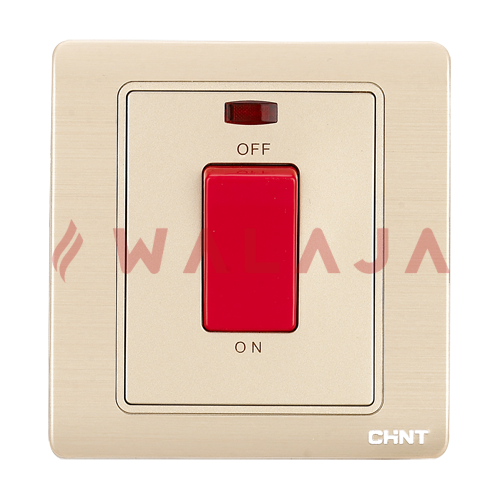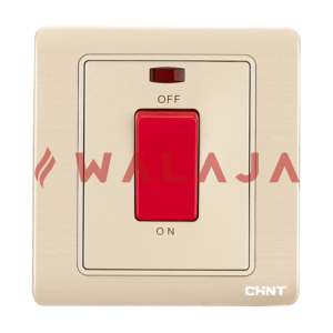 The HIMEL ALTIVO HWDAL45S is a robust 45A Double Pole (DP) switch designed for high-load applications such as water heaters, cookers, and HVAC equipment. With an integrated indicator light, it provides clear ON/OFF status visibility. Its premium finish options—Gold, Metallic, and Black—make it suitable for both modern residential and commercial projects.