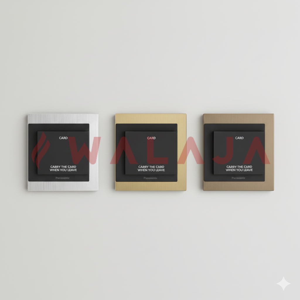 The Panasonic Flatima Electric Key Card Switch is designed for energy management in hotels, serviced apartments, and commercial spaces. It automatically controls power supply when a key card is inserted or removed, helping reduce energy consumption while maintaining guest convenience.