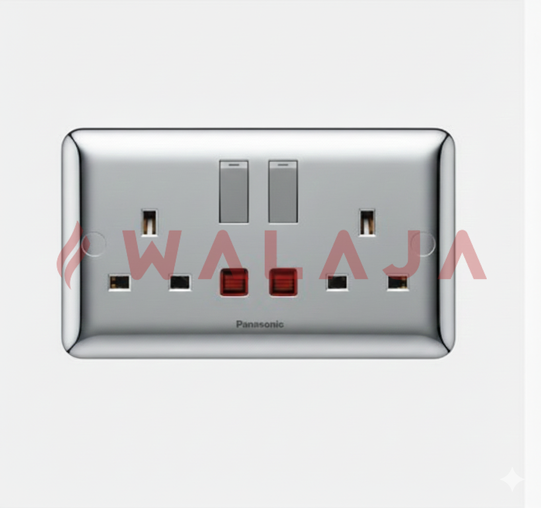 The Panasonic Harmony Metal WBC1224Y-2G is a premium 2-gang 13A double-pole switched socket outlet with an integrated neon indicator, designed for superior safety and elegant modern interiors. Its high-quality metal faceplate and reliable Panasonic engineering make it ideal for both residential and commercial applications.