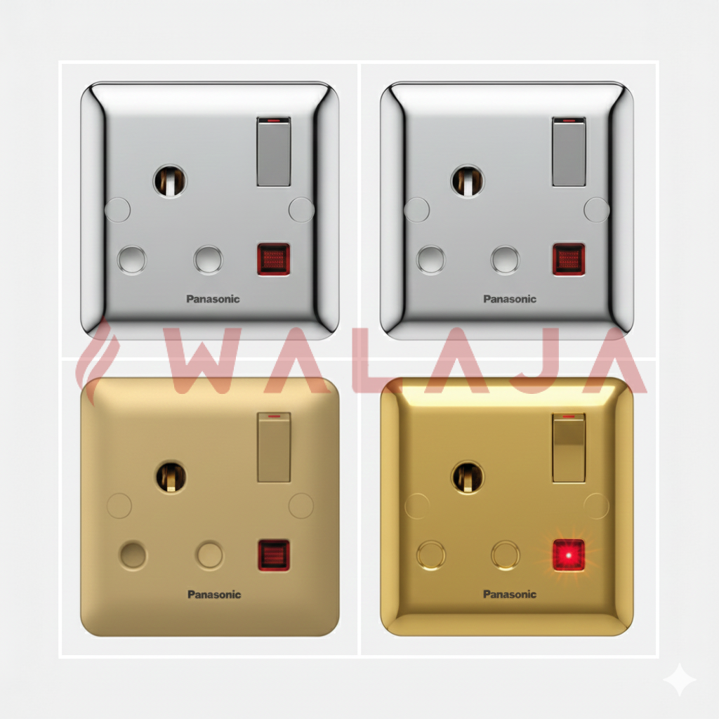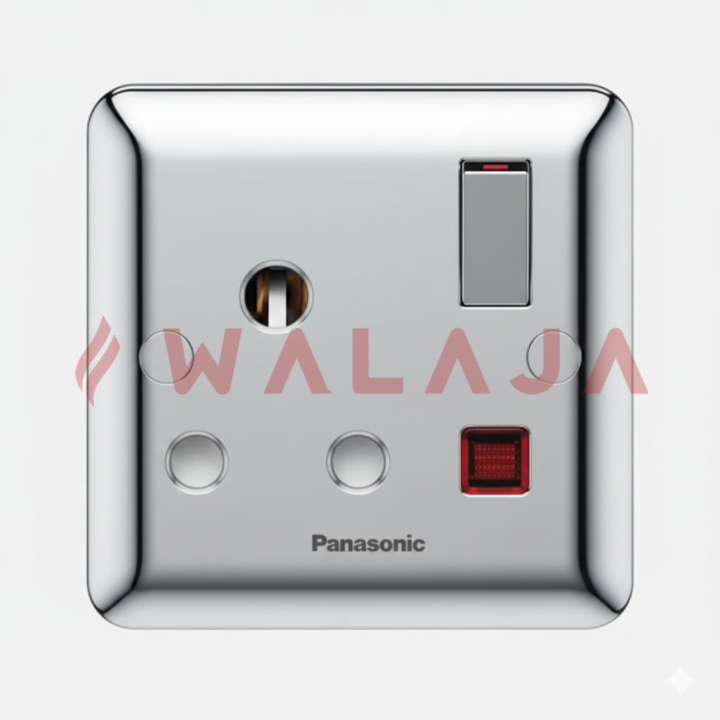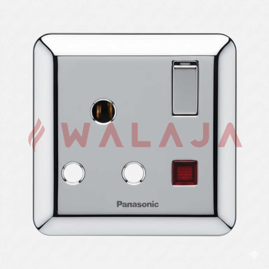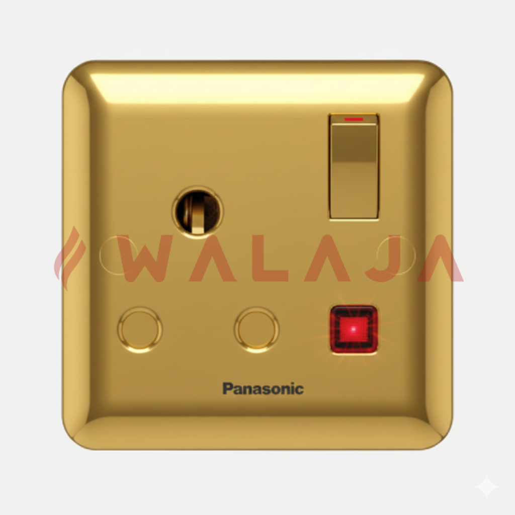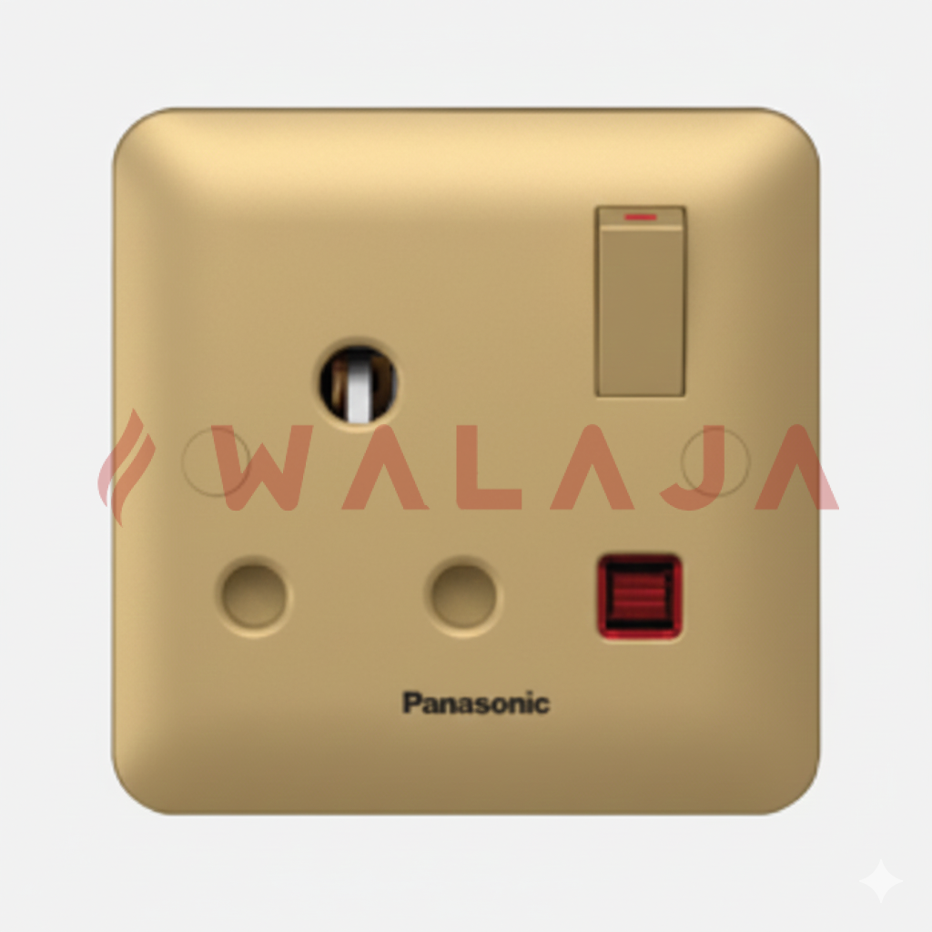 The Panasonic Harmony Metal WBC1313Y is a premium 15A socket with integrated switch and neon indicator, designed for enhanced safety and modern interior aesthetics. Its neon lamp clearly shows when the socket is powered, making it ideal for residential and commercial spaces where both style and functionality matter.