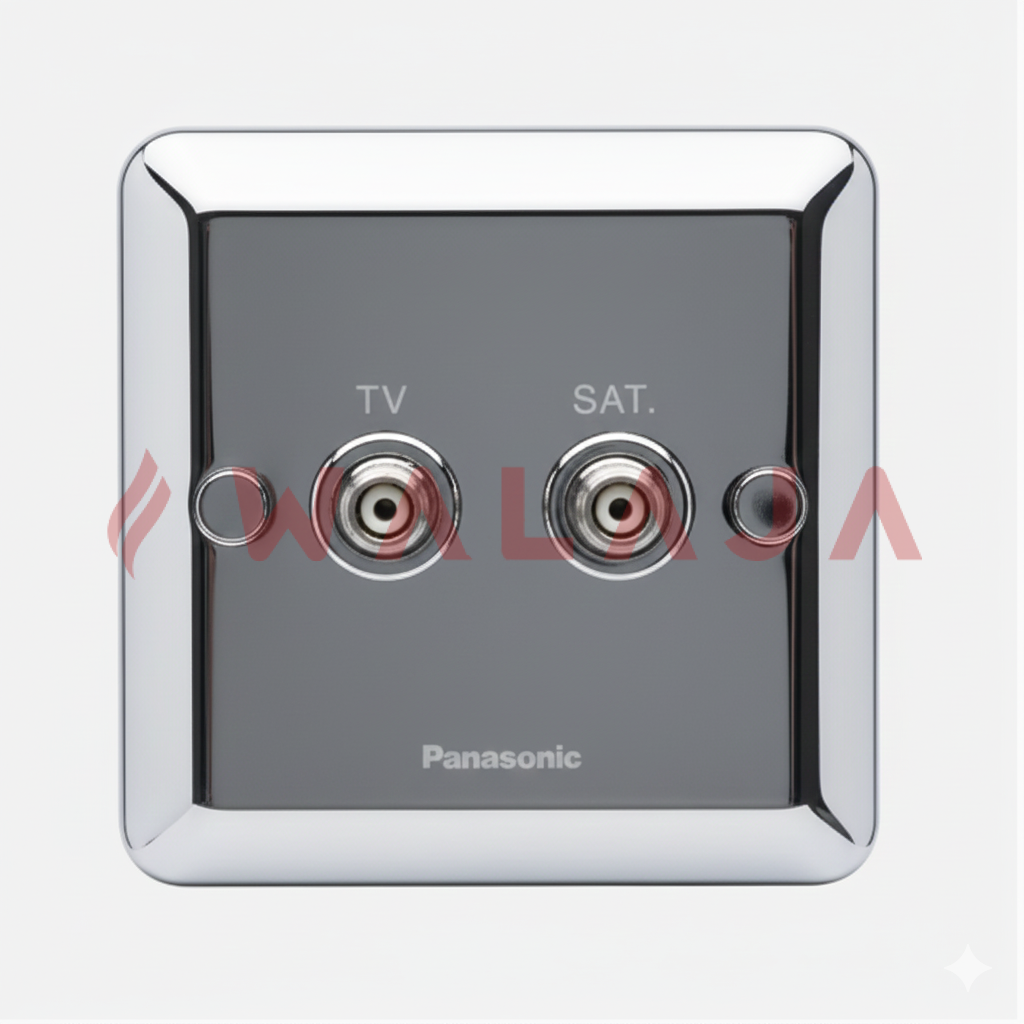 The Panasonic Harmony Metal WBC3820Y is a premium combined TV and satellite socket outlet, designed to deliver reliable signal connectivity for television and satellite systems. Its sleek metallic faceplate provides a stylish and modern look, making it ideal for contemporary residential and commercial interiors.