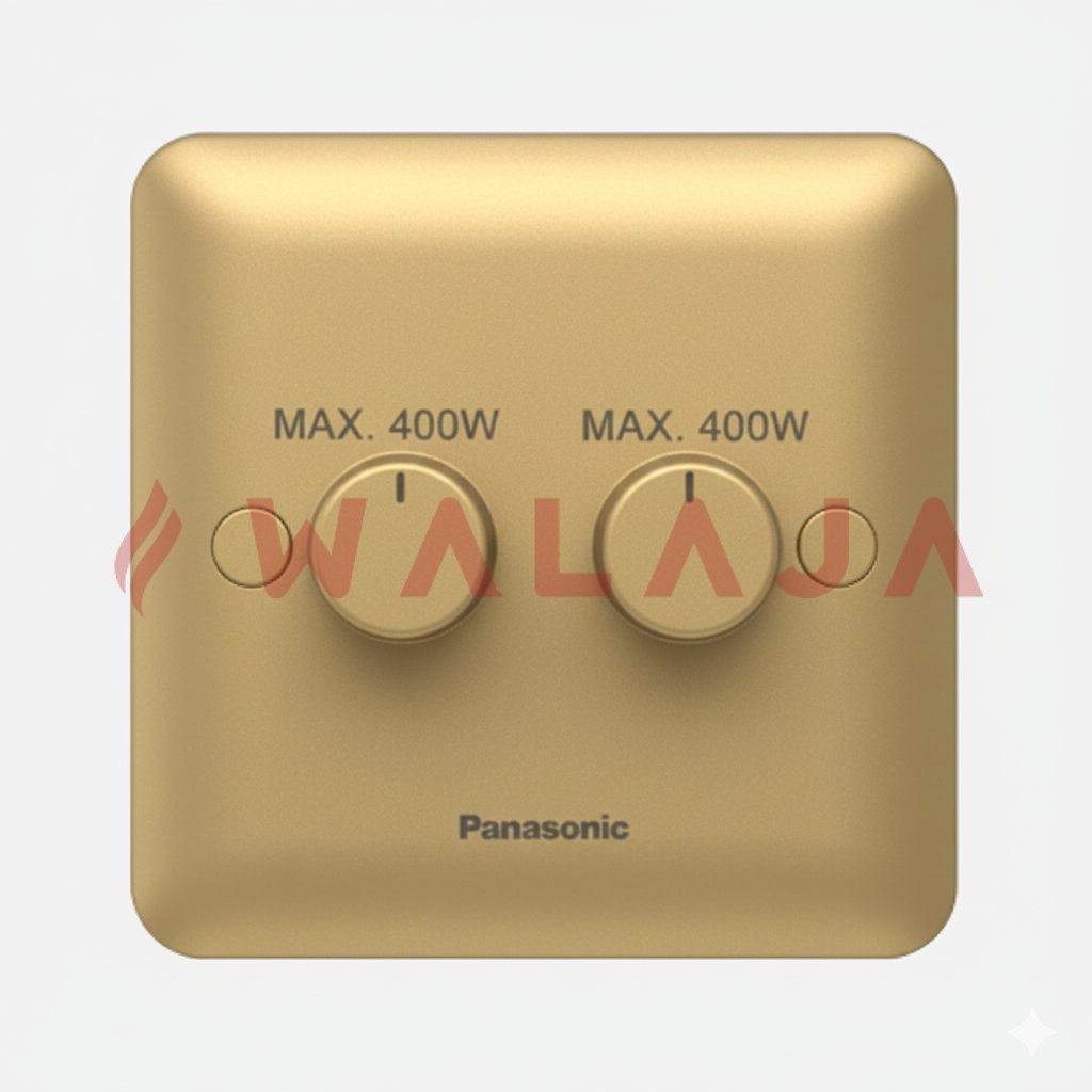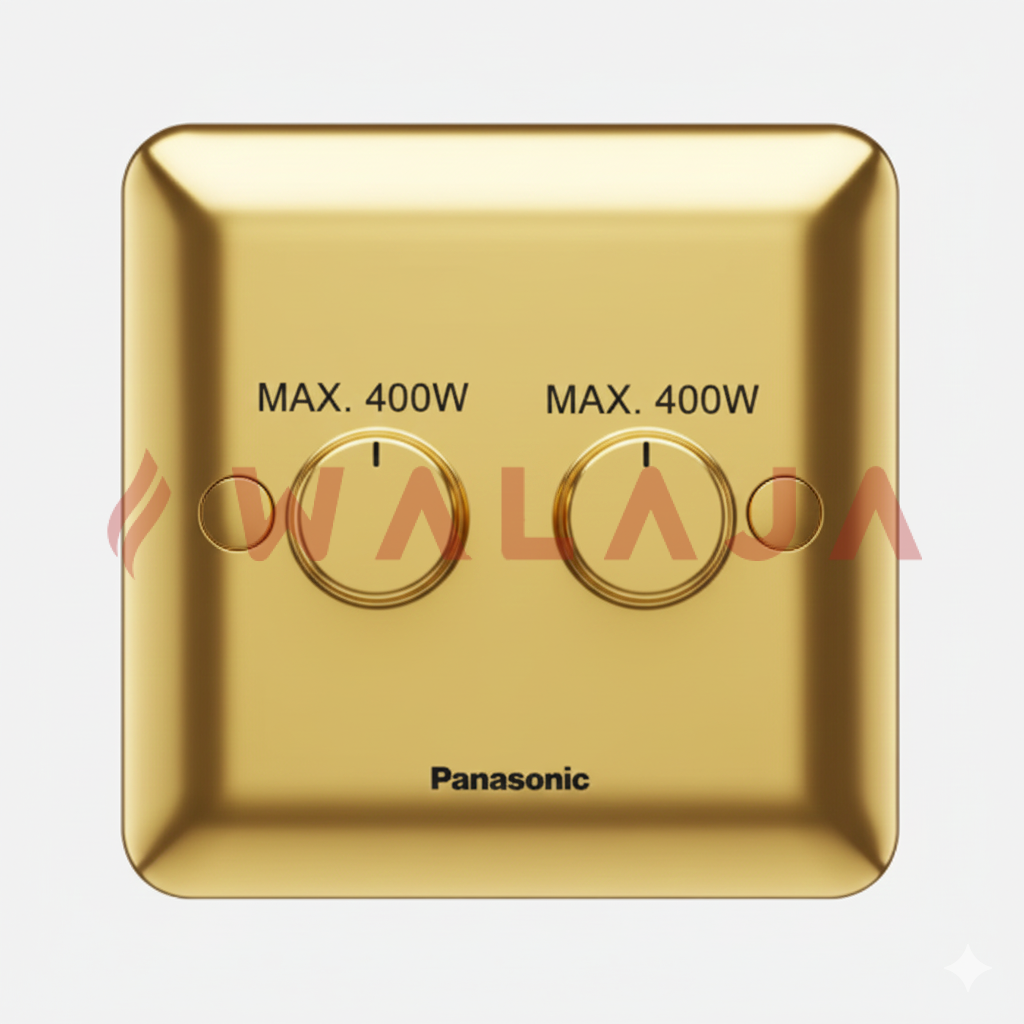 The Panasonic Harmony Metal WBC4221Y 2-gang dimmer switch is designed for smooth and precise lighting control, supporting up to 400W at 240V. Its 2-way functionality allows operation from two different locations, making it ideal for bedrooms, living rooms, and hallways. Featuring a premium metal finish in Gold, Matte Gold, Chrome, and Matte Chrome, it adds a refined and contemporary touch to any interior. Built with Panasonic’s trusted quality, this dimmer ensures reliable performance, durability, and easy installation, perfectly balancing style and functionality.