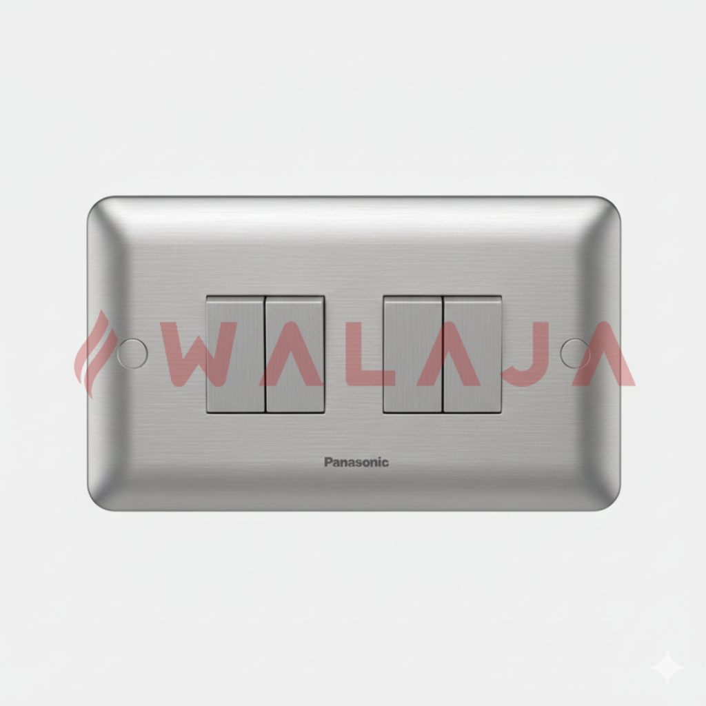 The Panasonic Harmony Metal WBC5041Y 4-gang 1-way switch offers superior quality and stylish design for your home or office. Its metallic finish in Gold, Matte Gold, Chrome, or Matte Chrome adds a touch of sophistication to your interiors. Rated for 10A, this switch ensures safe and reliable control of your lighting circuits. Built for durability and ease of installation, the Panasonic Harmony Metal switch combines functionality with elegance, making it an ideal choice for modern electrical setups.