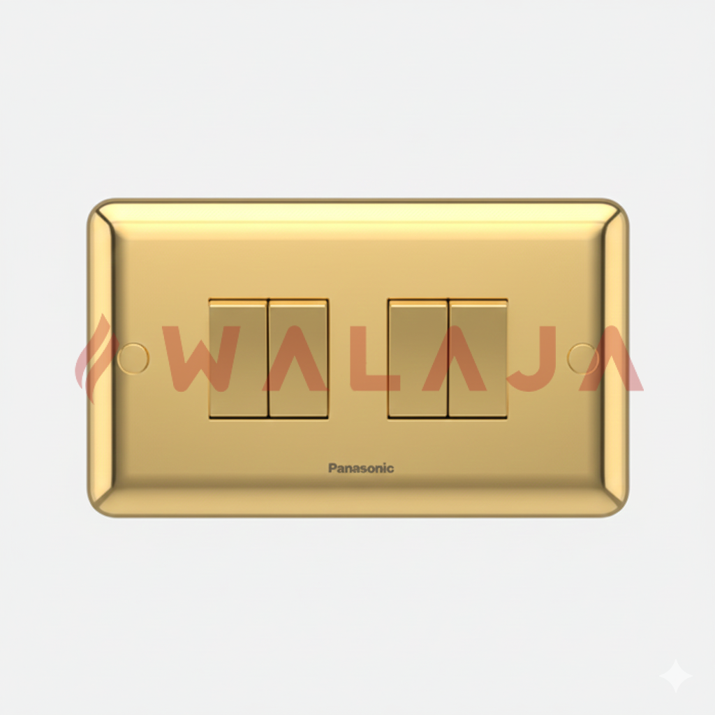 The Panasonic Harmony Metal WBC5042Y 4-gang 2-way switch is crafted to deliver both style and functionality. Featuring a premium metal finish, it enhances the visual appeal of any interior while ensuring long-lasting performance. With a 10A rating, it is suitable for efficient control of lighting circuits from two different locations. Available in Gold, Matte Gold, Chrome, and Matte Chrome, this switch seamlessly complements modern décor. Designed for easy installation and reliable operation, the Panasonic Harmony Metal switch is an excellent choice for contemporary electrical installations.