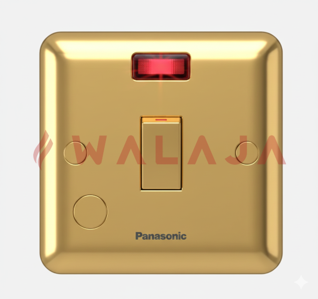 The Panasonic Harmony Metal WBC5303Y 1-gang 20A double pole switch is designed for safe isolation and control of high-power appliances. Equipped with a neon indicator, it provides clear visual confirmation of power status, enhancing safety and convenience. Its premium metal finish, available in Gold, Matte Gold, Chrome, and Matte Chrome, adds a sophisticated look to modern interiors. Engineered to Panasonic’s quality standards, this switch delivers durability, smooth operation, and easy installation, making it an ideal choice for residential and commercial electrical applications.