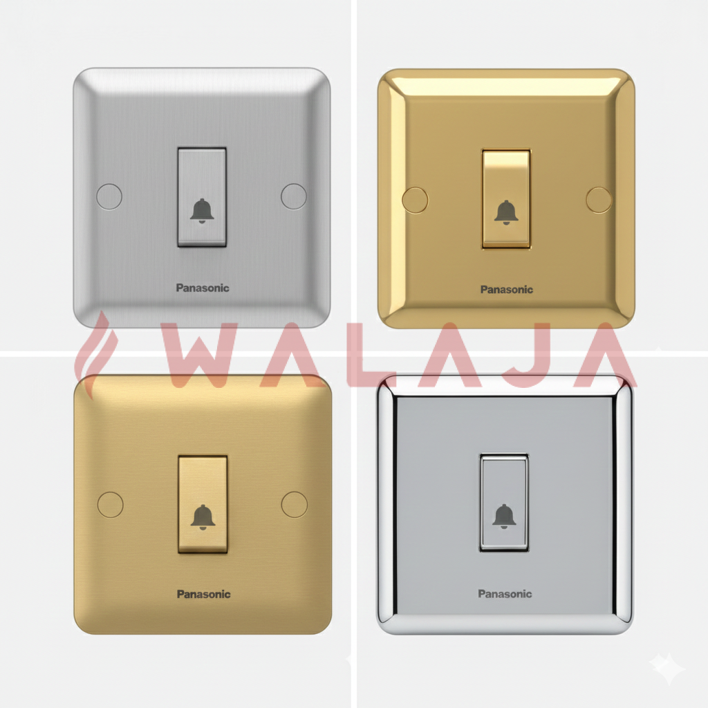 The Panasonic Harmony Metal WBC5511Y 1-gang push button SP switch is specially designed for doorbell and call bell applications. Featuring a distinct bell symbol for easy identification, it ensures user convenience while maintaining a sleek appearance. The premium metal finish, available in Gold, Matte Gold, Chrome, and Matte Chrome, enhances the elegance of modern interiors. Built with Panasonic’s trusted quality, this push button switch offers smooth operation, durability, and easy installation, making it an excellent choice for residential and commercial use.
