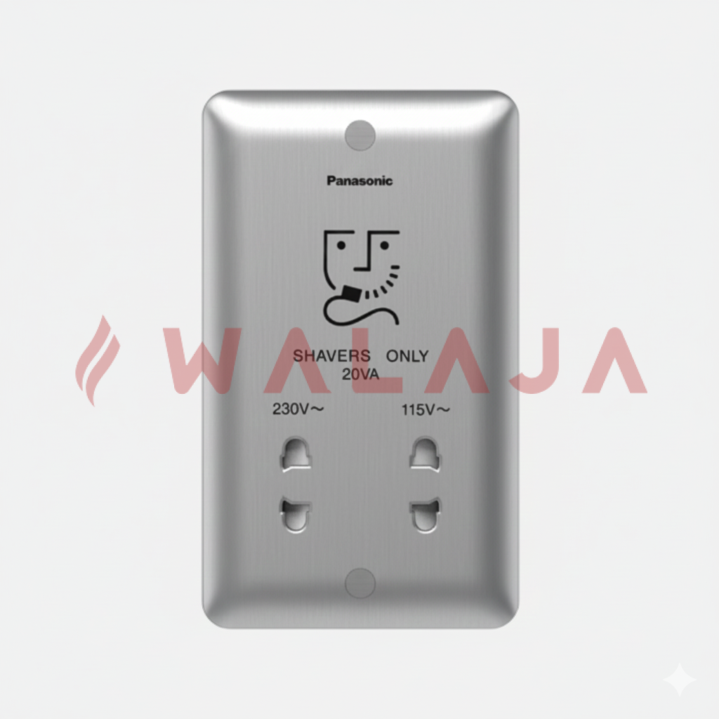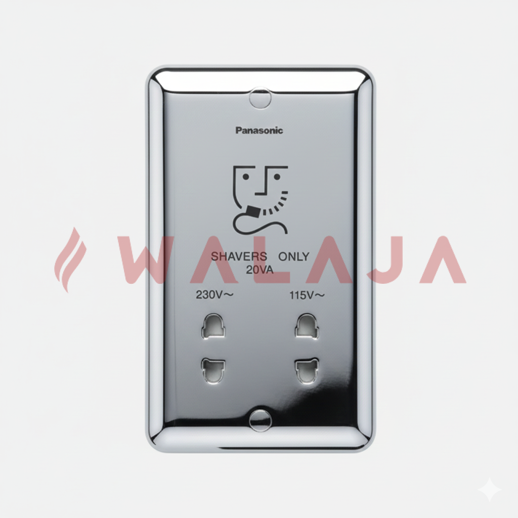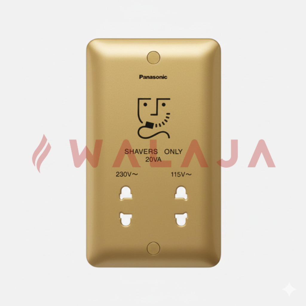The Panasonic Harmony Metal WBC9120Y is a premium shaver socket designed for safe and convenient use of electric shavers and other low-power bathroom appliances. Supporting input 220–250V and dual output 230/115V, it is ideal for both residential and commercial bathroom installations. Its sleek metallic finish adds a touch of elegance to modern interiors.