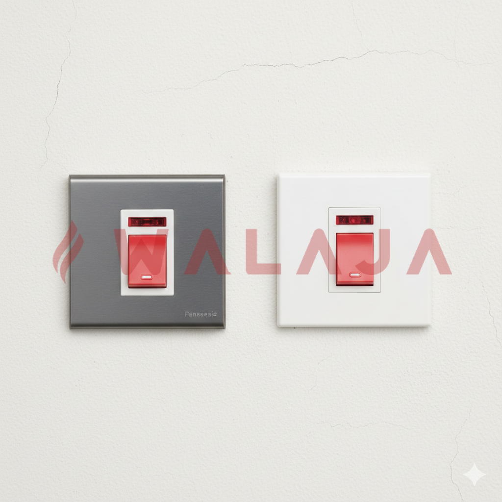 Ensure safe and reliable control of high-load appliances with the Panasonic Screwless Series 45A Double Pole A/C Switch with Neon Indicator (7×7, Modular). Designed for modern interiors, this heavy-duty switch combines robust performance with a sleek screwless finish, making it ideal for air conditioners and other high-power equipment.