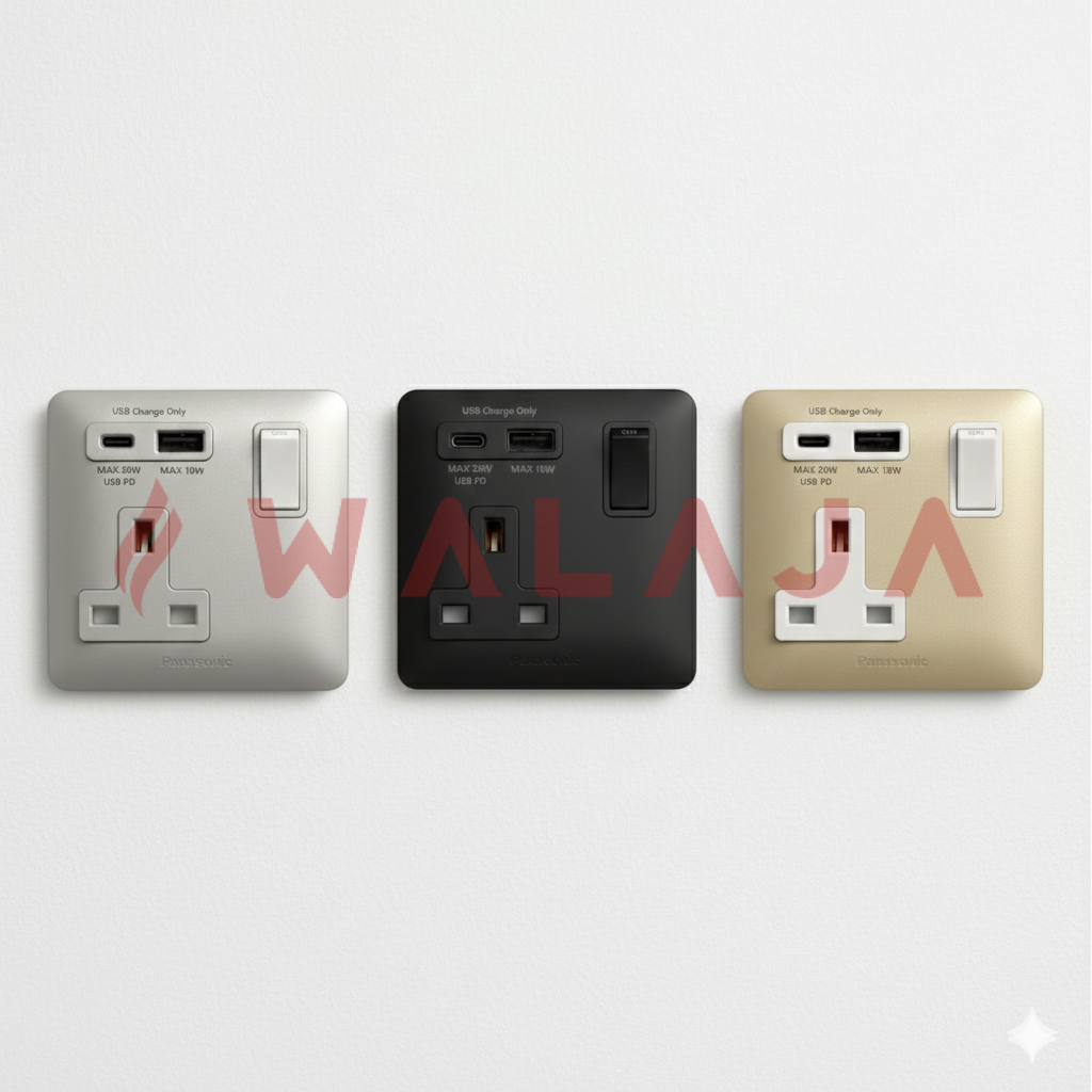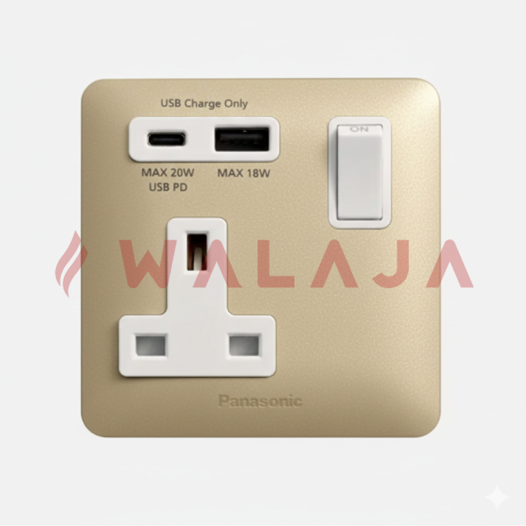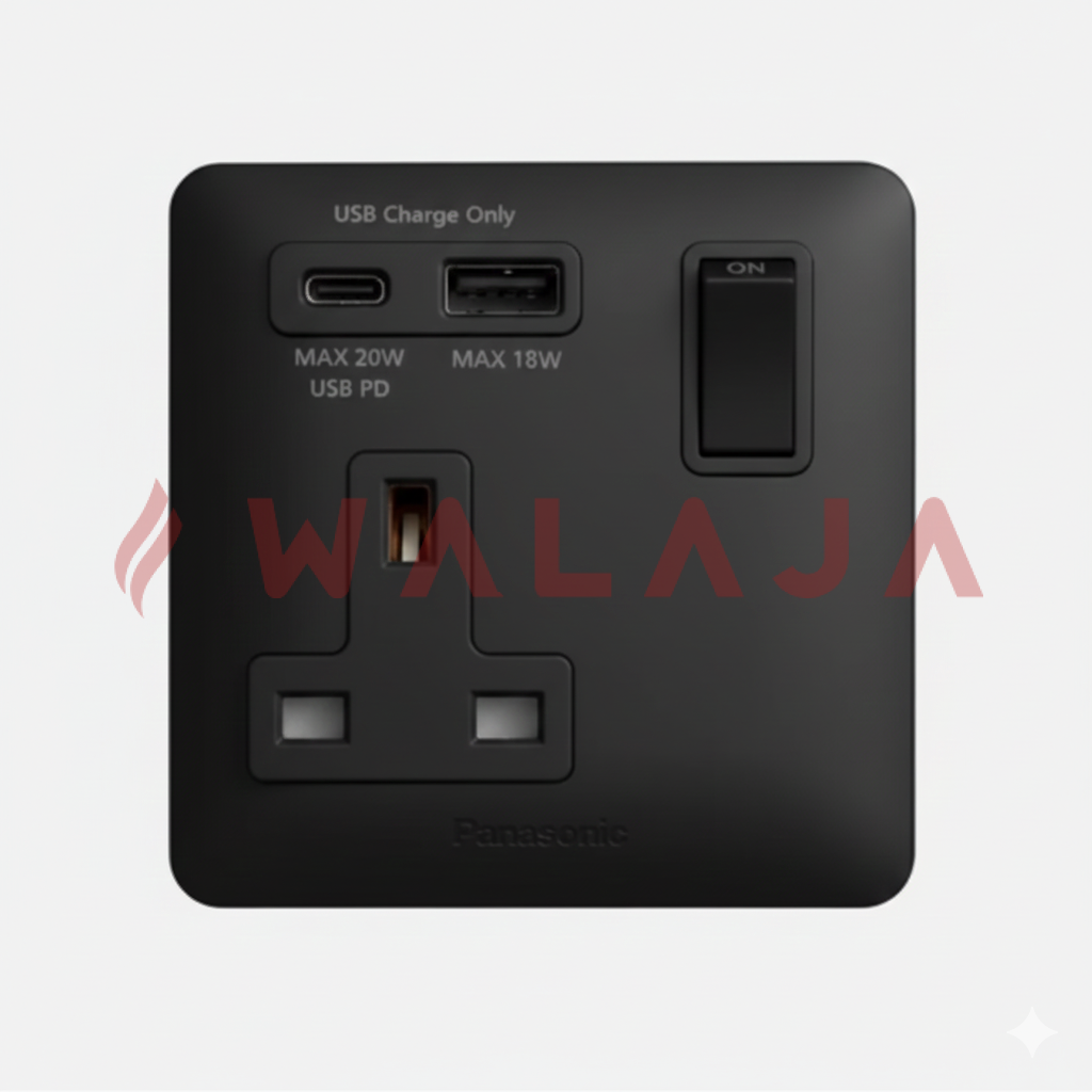 The Panasonic Simplus WSBC10162 series is a 1-gang, 1-device, 13A double-pole (DP) switched socket integrated with USB-A and USB-C charging ports, offering safe power supply and fast, convenient device charging in one compact unit. Available in Black (WSBC10162B), Gold (WSBC10162MYZ), and Gray (WSBC10162MYH), it combines modern design, advanced functionality, and Panasonic?s trusted reliability, making it ideal for homes, offices, hotels, and commercial spaces.