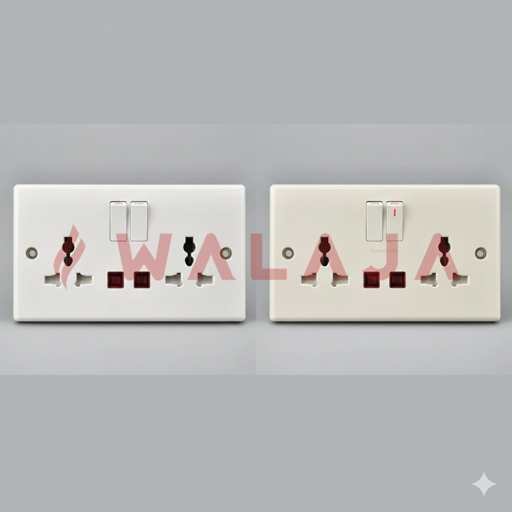 Homes, offices, kitchens, hotels, workshops, and commercial spaces requiring dual socket outlets with controlled and visible power status.