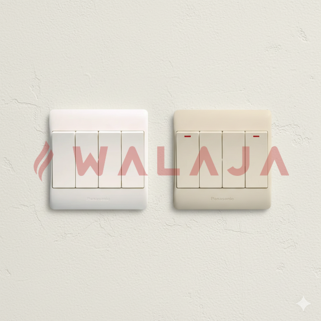 The Panasonic Simplus WSBC5092 series features reliable 1-gang, 4-module (4D), 2-way single-pole (SP) switches rated at 10A, available in White (WSBC5092W) and Beige (WSBC5092F). Designed for dual-location lighting control, these switches combine a wider modular design with Panasonic’s trusted quality, ensuring smooth operation and a modern aesthetic.