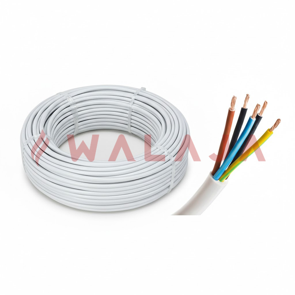 RR Flexible Cable (5 C x 4 mm?) is a high-capacity flexible electrical cable designed for demanding wiring applications in residential, commercial, and light industrial installations. It features four flexible copper conductors with a white outer sheath, is rated for 70 ?C operating temperature, and supplied in a 100-yard roll, making it ideal for power distribution and multi-wire circuits where flexibility and durability are needed.